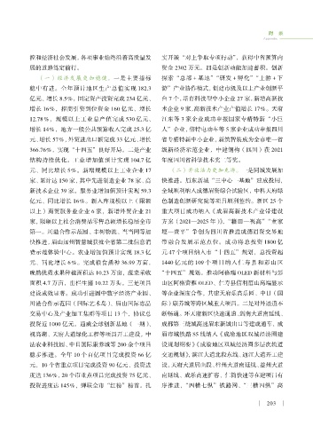 (一)经济发展更加稳健。一是主要指标 探索“总部 + 基地”“研发 + 孵化”“上游 + 下
