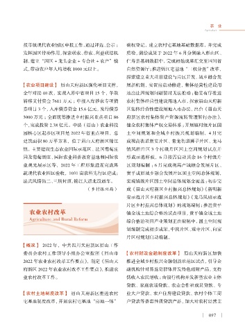 2022 年农业农村改革工作要点》,制定《眉山天 推进全域乡村振兴金融创新示范区试点,引导金