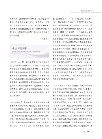 【概况】 2022 年,眉山天府新区打赢蓝天保卫 门”,确保饮用水源安全;全面完成农村生活污水