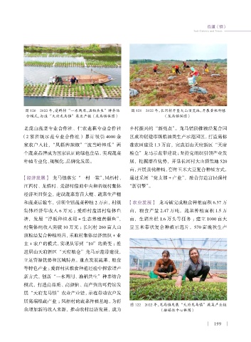 图 120 2022 年,爱群村“一水两用、渔稻共生”种养结 图 121 2022 年,长河村开垦大山顶荒地,开展黄桃种植