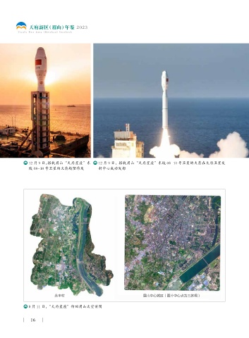 天府新区(眉山)年鉴 2023 Ti a n f u Ne w A r e a (M e i s h a n) Ye a r b o ok 12 月 9 日,搭载眉山“天府星座”东 12 月 9 日,搭载眉山“天府星座”东坡 08-10 号卫星的火箭在太原卫星发 坡 08-10 号卫星的火箭起竖待发 射中心成功发射 永丰村 眉山中心城区(图片中心点为三苏祠) 8 月 11 日,“天府星座”传回眉山太空首图 16