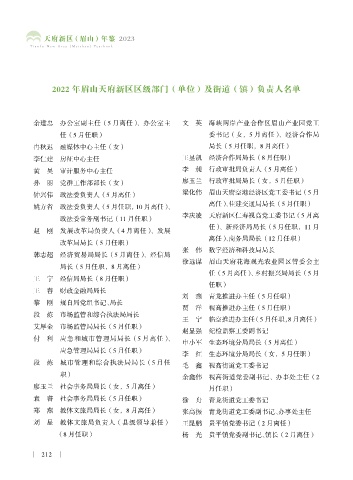 2022 年眉山天府新区区级部门(单位)及街道(镇)负责人名单