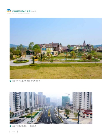 天府新区(眉山)年鉴 2023 Ti a n f u Ne w A r e a (M e i s h a n) Ye a r b o ok 2022 年的中法农业科技园·阿飞森林乐园 2022 年市政道路建设——花海大道 24