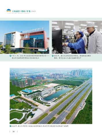 天府新区(眉山)年鉴 2023 Ti a n f u Ne w A r e a (M e i s h a n) Ye a r b o ok 7 月 11 日,2022 年全省首家获批的融资租赁公司—— 2022 年,眉山天府新区抢占新赛道,推进制造业强区 眉山环天融资租赁有限公司在新区设立 建设。图为企业工人通过电脑管理生产 2022 年,眉山天府新区以通威全球创新基地、联合利华为载体的先进制造产业集群 30