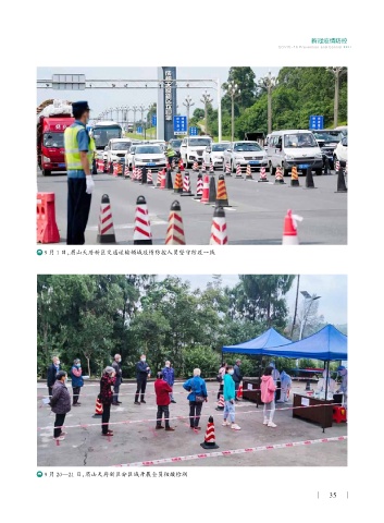 新冠疫情防控 COVID-19 Prevention and Control 9 月 1 日,眉山天府新区交通运输领域疫情防控人员坚守防疫一线 9 月 20—21 日,眉山天府新区分区域开展全员核酸检测 35