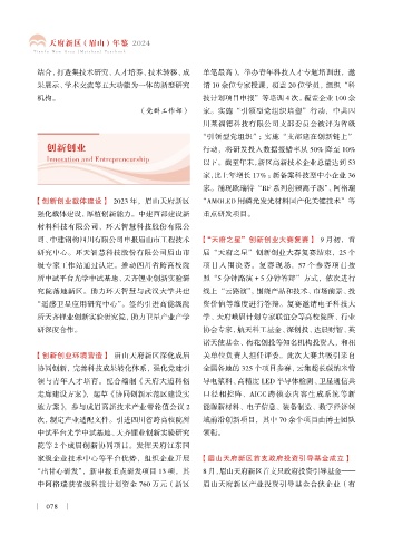 【创新创业载体建设】 2023 年,眉山天府新区 “AMOLED 用磷光发光材料国产化关键技术”等