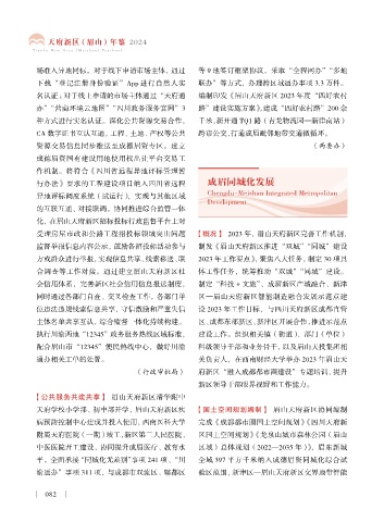 会信用体系,完善新区社会信用信息报送制度, 制定“科技 + 文旅”、成眉新区产城融合、新津