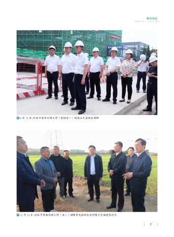 领导关切 Leadership’s Concerns 6 月 12 日,时任市委书记胡元坤(前排右一)到眉山天府新区调研 11 月 16 日,时任市委书记胡元坤(右一)调研青龙粮经标准种植示范园建设情况 5