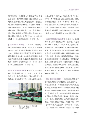 (夏季 19∶00),班次间隔 60 ~ 80 分钟一班。 【公交 T508 路开通运营】 8月28日, 公 交