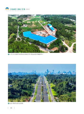 天府新区(眉山)年鉴 2024 Ti a n f u Ne w A r e a (M e i s h a n) Ye a r b o ok 6 月 2 日,建设中的眉山天府新区首个农业社会化服务中心 2023 年的天府大道景观 16