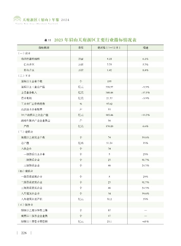 表 11 2023 年眉山天府新区主要行业指标情况表