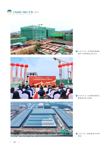 天府新区(眉山)年鉴 2024 Ti a n f u Ne w A r e a (M e i s h a n) Ye a r b o ok 10 月 12 日,四川农信视高数 据中心项目部分主体完工 10 月 30 日,天齐锂业创新实 验研究院开工建设 12 月 8 日,菲斯特项目全部 封顶 34