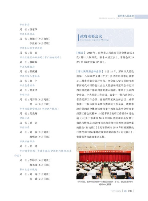 局 长 :张 丽 【概况】 2020 年,彭州市人民政府召开全体会议 2