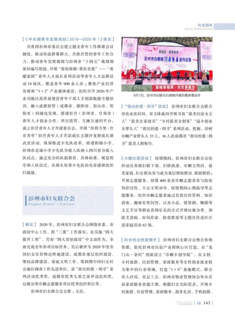 【概况】 2020 年,彭州市妇女联合会围绕市委、市 进家庭活动 42 场。