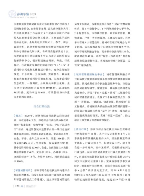 【概况】 2020 年,彭州市综合行政执法局围绕市 量赶赴现场进行处置,实现.“智慧.+.巡查”,助力