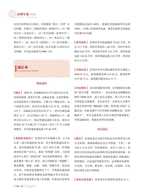 【物流体系建设】 彭州市有汽车邮路 4 条,长 218 【概况】 彭州电信公司是中国电信在彭州市设立的