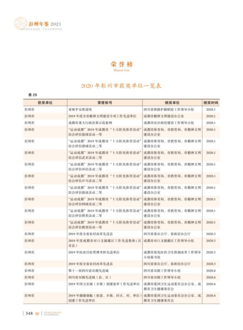 彭州市 2019 年国卫县城(乡镇)创建复审工作先进单位 成都市爱国卫生运动委员会办公室、成 2020.4