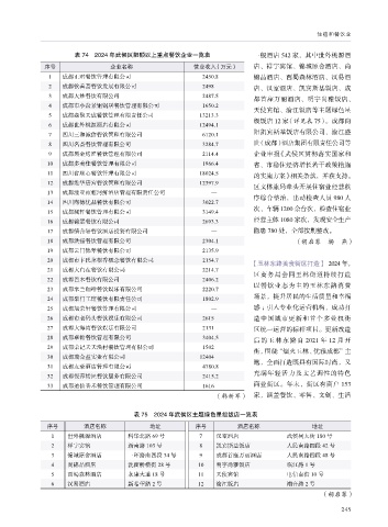 表 74 2024 年武侯区限额以上重点餐饮企业一览表 一般酒店 542 家,其中世外桃源酒
